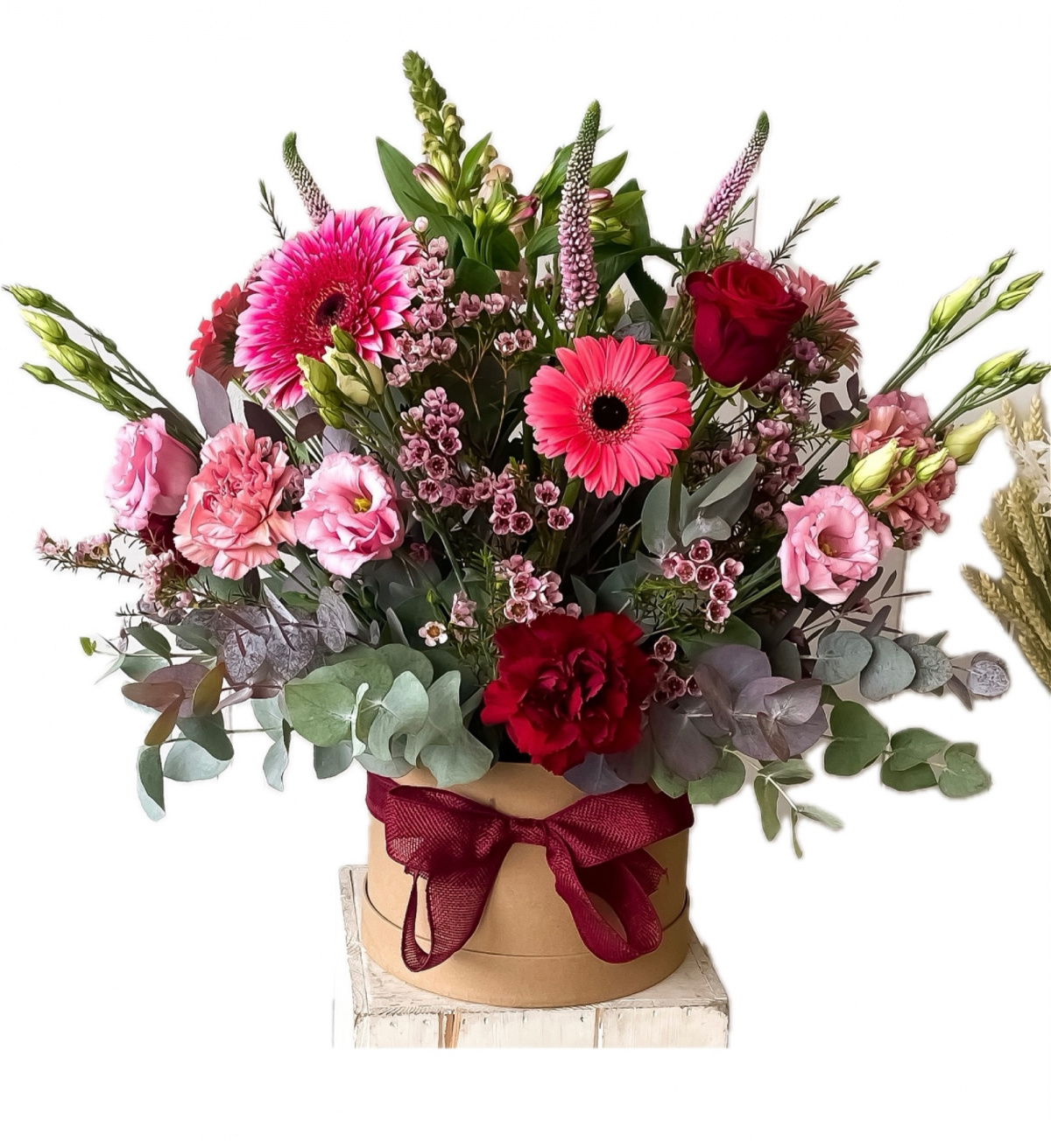 A Thoughtful gift arrangement for All Occasions, beautifully designed Fresh Flowers & Seasonal Foliages. Florist Choice Designed, Roses, Gerberas, Lisianthus , Carnations and Fresh Foliages.