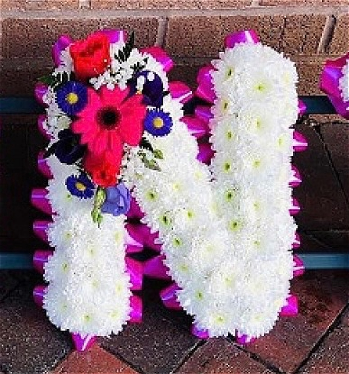Tribute Letters based in Chrysanthemums with a Spray of Flowers in customers choice.